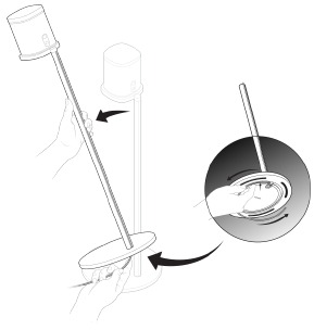 - Zasukajte zvočnik, da ga postavite na mesto, nato pa ga obrnite desno, da ga varno zaklenete. Obrnite levo za odklepanje.