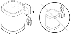 - Postavite polico tako, kot želite (podpira postavitev zvočnika na levo ali desno stran). Pritisnite polico trdno na stenski nosilec, dokler se ne zaskoči (spredaj in zadaj).