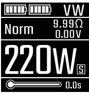 Kot napredni način Variable Wattage (spremenljiva moč), obstajajo 3 stopnje VW: H pomeni High (visoka); N pomeni Normal (normalna); S pomeni Soft (mehka). Privzeta nastavitev je Normal (normalna). VW(H/N/S) bo zagotovil, da bo vaš mod znal spretno izbrati ustrezno povprečno moč za vaš atomizer, glede na njegovo odčitavanje upornosti, samodejno.