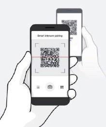 (Meni za pametno seznanjanje interkoma). - Skenirajte kodo QR, ki je prikazana na mobilnem telefonu vašega prijatelja (B).