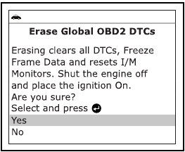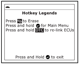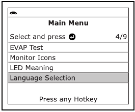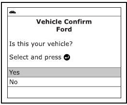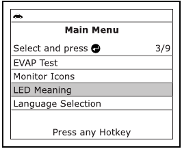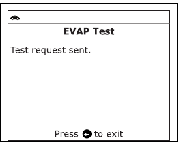 - Ko vgrajeni računalnik vozila sproži test puščanja EVAP, se na zaslonu skenerja prikaže potrditveno sporočilo. Pritisnite gumb ENTER