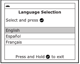 Ko je enota prvič priključena na vozilo, morate izbrati želeni jezik prikaza (angleščina, francoščina ali španščina) in mersko enoto (ZDA ali metrično), kot sledi: