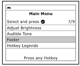 , da označite Footer, nato pritisnite gumb ENTER