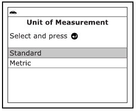 , da označite Unit of Measurement, nato pritisnite gumb ENTER