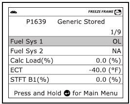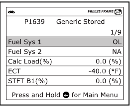 Prikaže zaslon DTC View in/ali pomika po LCD-zaslonu za ogled DTC in podatkov zamrznjenega okvirja.