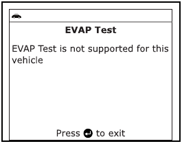 Nekateri proizvajalci vozil ne dovolijo, da bi skenerji ali druge zunanje naprave nadzirale sisteme vozila. Če EVAP Test ne podpira vozilo, ki ga testirate, se na zaslonu skenerja prikaže opozorilno sporočilo. Pritisnite gumb ENTER