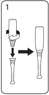 - Zavrtite vrh palice v ročaj in privijte v smeri urinega kazalca. Zavrtite v nasprotni smeri urinega kazalca, da ločite zgornji in spodnji del.