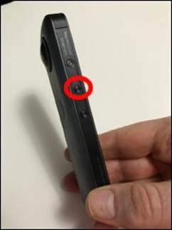 - Vklopite fotoaparat Theta s kratkim pritiskom na gumb za vklop ob strani.