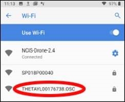 - Fotoaparat Theta bo viden na seznamu razpoložljivih virov Wi-Fi kot THETAYLXXXXXXXX.OSC. Črke X bodo nadomeščene s serijsko številko vaše določene naprave.