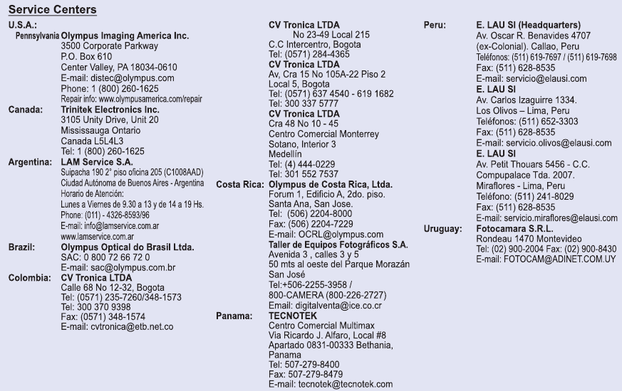Prandaj, mund të mos merrni një shërbim riparimi. Kontaktoni paraprakisht stacionin e autorizuar të shërbimit Olympus.