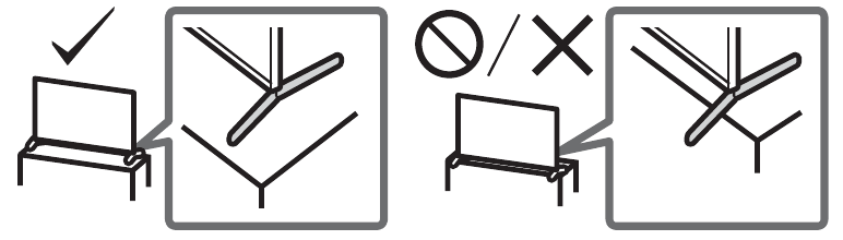 - Instaloni televizorin në mënyrë që mbështetësja e televizorit të mos dalë jashtë nga mbajtësja e televizorit (nuk ofrohet). Nëse mbështetësja e televizorit del jashtë nga mbajtësja e televizorit, kjo mund të shkaktojë që televizori të rrëzohet, të bjerë poshtë dhe të shkaktojë lëndime personale ose dëmtim të televizorit.