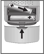 - Vendosni dy bateri (tip mikro, 1.5 V, LR 06/AM3/AA) në kutinë e baterisë. Sigurohuni që polariteti i baterisë të jetë siç shënohet në fund të kutisë.