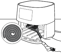 Pastrojeni elementin ngrohës me një furçë pastrimi për të hequr çdo mbetje ushqimi.