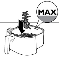 | Sasia e përbërësve në shportë është shumë e madhe. | Ndiqni udhëzimet në këtë manual përdorimi për të përgatitur patate të skuqura të bëra në shtëpi. | |