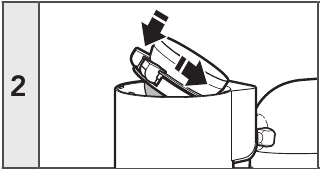 - Për të instaluar rezervuarin e përbërësve: Rreshtoni valvulën e përbërësit me prerjen përkatëse në peshore dhe uleni rezervuarin mbi peshore derisa të vendoset plotësisht.