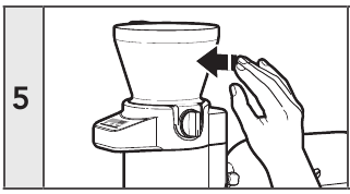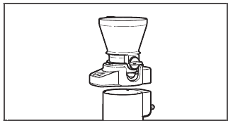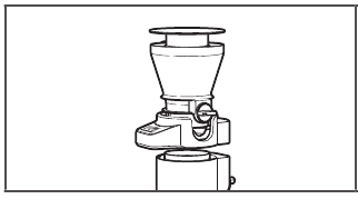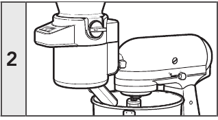 - Fikeni Mikserin e Qëndrimit (Stand Mixer) dhe shkëputeni shtojcën e Sitës+Peshore nga Mikseri i Qëndrimit (Stand Mixer) pas çdo përdorimi të shtojcës dhe para pastrimit. Sigurohuni që motori të ndalojë plotësisht para se të çmontoni.