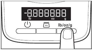 OPSIONALE: Shtypni butonin lb/oz/g për të zgjedhur midis paundëve, onsëve dhe gramëve. Cilësimi i parazgjedhur është gram.