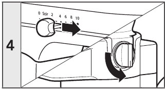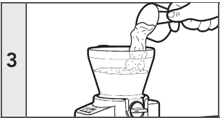 - Përpara se të shtoni përbërës në rezervuar, sigurohuni që valvula e përbërësit të jetë në pozicion të mbyllur dhe rrëshqitësi rrotullues të jetë drejtuar në tasin e mikserit ose në një enë të përshtatshme.
