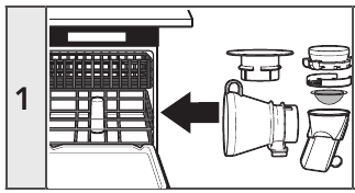 - Pjesët e mëposhtme janë të sigurta për larje në lavastovilje, vetëm në raftin e sipërm: rezervuari i përbërësve, montimi i sitës, kanali rrotullues dhe pllaka e peshores.