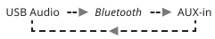 Modaliteti Treguesi LED USB Audio Ngjyrë Vjollcë Fiks Çiftimi Bluetooth Blu që Pulson Bluetooth i Lidhur Blu Fiks AUX-in Jeshile Fiks Modaliteti i Përzgjedhjes së Ngjyrave E Bardhë që Pulson - Çelësi i Volumit