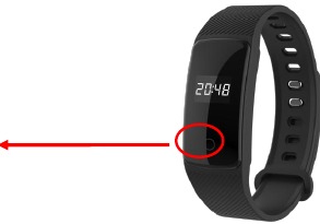 Sigurohuni që pajisja të jetë e karikuar para përdorimit fillestar. Në rast se pajisja ka bateri të ulët, lidheni pajisjen me kapësen e karikuesit dhe lidhni kabllon USB me PC-në tuaj. Pajisja do të ndizet automatikisht (ju lutemi kapni kapësen e karikimit në pozicionin e 2 pikave të pasme të byzylykut si më poshtë)