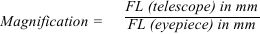 Zmadhimi (ose fuqia) i një teleskopi ndryshon në varësi të gjatësisë fokale të okularit që përdoret dhe gjatësisë fokale të teleskopit.