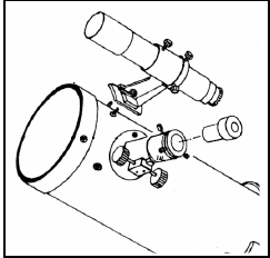 - Vendoseni mbajtësen e gjurmuesit mbi dy vrimat në tubin e teleskopit, duke rreshtuar vrimat në mbajtësen e gjurmuesit me ato në tubin e teleskopit.