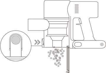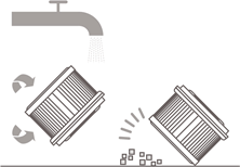 - Pastroni filtrin HEPA me ujë të pastër. Sigurohuni që ta rrotulloni filtrin HEPA 360° për të hequr plotësisht të gjithë pluhurin e kapur në filtër. Trokitni lehtë filtrin disa herë për të hequr çdo papastërti të tepërt.