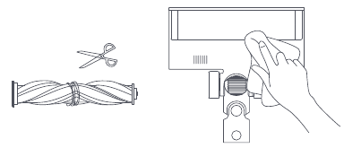- Përdorni gërshërë për të prerë dhe nxjerrë çdo flokë ose mbetje tjetër të ngatërruar rreth furçës me rrotull. Fshijeni pluhurin e tepërt nga foleza dhe kapaku i pastër plastik duke përdorur një leckë të thatë ose peshqir letre.