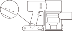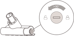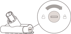 - Futeni montimin e ciklonit vertikalisht në kompartimentin e pluhurit dhe sigurohuni që doreza e montimit të ciklonit të jetë në linjë me folezën në anën e majtë të kompartimentit të pluhurit. Kthejeni dorezën në drejtim të akrepave të orës derisa të kyçet, pastaj kthejeni dorezën poshtë.