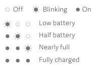 Pasi pastruesja me vakum të jetë karikuar plotësisht, treguesi do të fiket pas 5 minutash dhe pastruesja me vakum do të hyjë më pas në modalitetin e kursimit të energjisë.