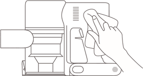 - Futeni filtrin HEPA në fshesën me korrent dhe shtypeni butësisht poshtë, siç ilustrohet.