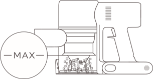 - Aftësia e pastrimit të fshesës me korrent do të reduktohet nëse pluhuri mbushet deri në shenjën "MAX". Për të rifituar performancën, zbrazni përmbajtjen. zbrazni kompartimentin e pluhurit në kohën e duhur. Përpara se të zbrazni kompartimentin, sigurohuni që fshesa me korrent të jetë e shkëputur nga energjia dhe mos e shtypni butonin e saj të energjisë.