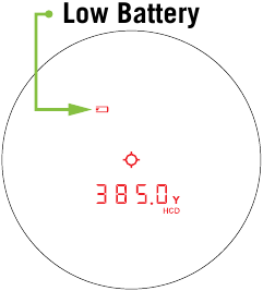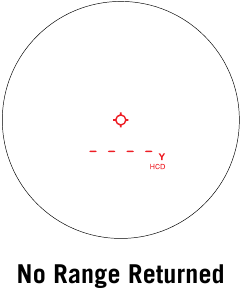 Me Viper® HD 3000 të ndezur, poziciononi fillin në objektin e shënjestruar dhe shtypni dhe lëshoni butonin "Measure" (Maso) për të marrë matjen e distancës. Nëse lazeri nuk është në gjendje të masë rrezen për shkak të reflektivitetit të shënjestrës, do të shihni një ekran të ngjashëm me atë të treguar këtu. Për të matur rrezen e një shënjestre të re, thjesht ri-synoni dhe shtypni përsëri butonin "Measure" (Maso).