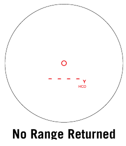 Me Diamondback™ HD 2000 të ndezur, poziciononi rrjetën në objektin e synuar që dëshironi të matni largësinë, pastaj shtypni dhe lëshoni butonin "Measure" (Maso) për të marrë matjen e distancës. Nëse laseri nuk është në gjendje të matë largësinë për shkak të reflektivitetit të objektit të synuar, ose duke qenë shumë afër, do të shihni një ekran të ngjashëm me atë të treguar Nuk u Kthye Largësi këtu. Për të matur largësinë e një objektivi të ri, thjesht ri-synoni dhe shtypni përsëri butonin "Measure" (Maso).