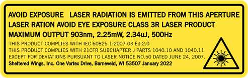 Mos e shikoni rrezen ose shikoni drejtpërdrejt pa mbrojtje për sytë nga laseri. Shikimi vazhdimisht në rreze për periudha të gjata kohore mund të shkaktojë dëmtime në sytë tuaj. Nëse përdoret siç duhet, kjo pajisje është e sigurt për sytë tuaj dhe nuk nevojitet mbrojtje për sytë nga laseri.