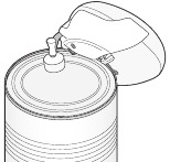 Shënim: Kanaçet prej 28 oz. (784 g) ose më shumë (si p.sh. domate të ziera ose kanaçe të mëdha kafeje), si dhe kanaçet 21/8" (54 mm) ose më pak në diametër (si p.sh. kanaçe të vogla me salcë domatesh) nuk mund të hapen duke përdorur njësinë në bazën e montuar. Për kanaçe të këtyre madhësive, bashkangjitni njësinë drejtpërdrejt në kanaçe.