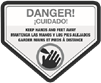 | Etiketë rreziku e CPSC (Consumer Product Safety Commission). | | Mbani spektatorët dhe fëmijët në një distancë të sigurt. |
