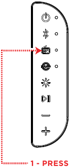 Nëse Party Splash TM është i ndezur dhe jeni në modalitetin FM ose duke përdorur hyrjen Aux, do t'ju duhet të shtypni butonin Bluetooth për të kaluar në modalitetin Bluetooth.