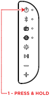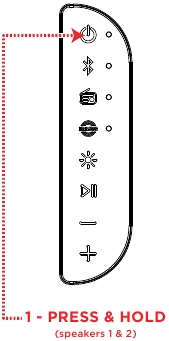 - Shtypni dhe mbani butonat Power (Ndiz) në të dy altoparlantët Party Splash™.