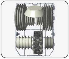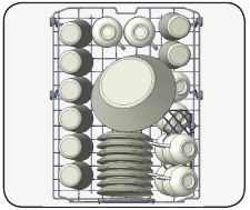 Shporta e sipërme është projektuar për filxhanë, gota, pjata të vogla, tasa dhe artikuj plastikë që janë të shënuar si të sigurta për lavastovilje.