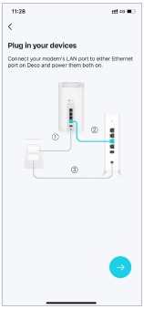 Fikeni modemin tuaj. Lidhni Deco tuaj me modemin dhe ndizni të dyja.
