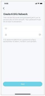 Vendosni një emër rrjeti dhe një fjalëkalim. Këto do të jenë emri dhe fjalëkalimi që përdorni për të lidhur pajisjet tuaja me 6GHz Wi-Fi.