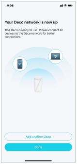 Rrjeti juaj Deco tani është funksional. Ju mund të lidhni pajisjet tuaja me rrjetin Deco. Futeni në prizë Decos e tjera të përfshira dhe ato automatikisht do t'i bashkohen rrjetit brenda 2 minutash.