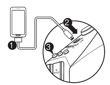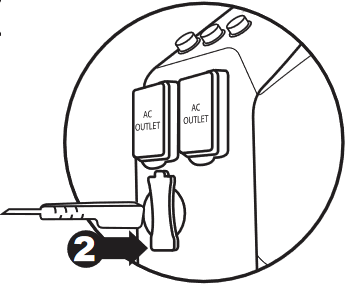 - Gjeni kordonin e karikimit AC të ruajtur në ndarjen pranë dorezës së Powerpack-ut.