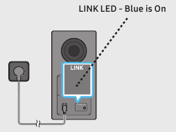- Kontrolloni nëse treguesi LED në pjesën e pasme të Subwoofer dhe Altoparlantëve Surround është i ndezur me ngjyrë blu. Rilidheni Soundbar dhe Subwoofer dhe Altoparlantët Surround nëse treguesi po pulson me ngjyrë blu ose është kthyer në të kuqe.