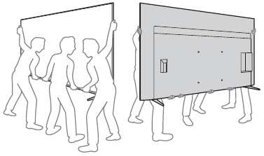 - Duhen dy ose më shumë persona (tre ose më shumë persona për televizorë 214,8 cm (85 inç) dhe më lart) për të transportuar një televizor të madh.