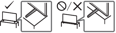 - Instaloni televizorin në mënyrë që mbështetësja e tavolinës së televizorit të mos dalë nga mbështetësja (nuk furnizohet). Nëse mbështetësja e tavolinës del nga mbështetësja, mund të shkaktojë rrëzimin e televizorit, rënien poshtë dhe shkaktimin e lëndimit personal ose dëmtimin e televizorit.