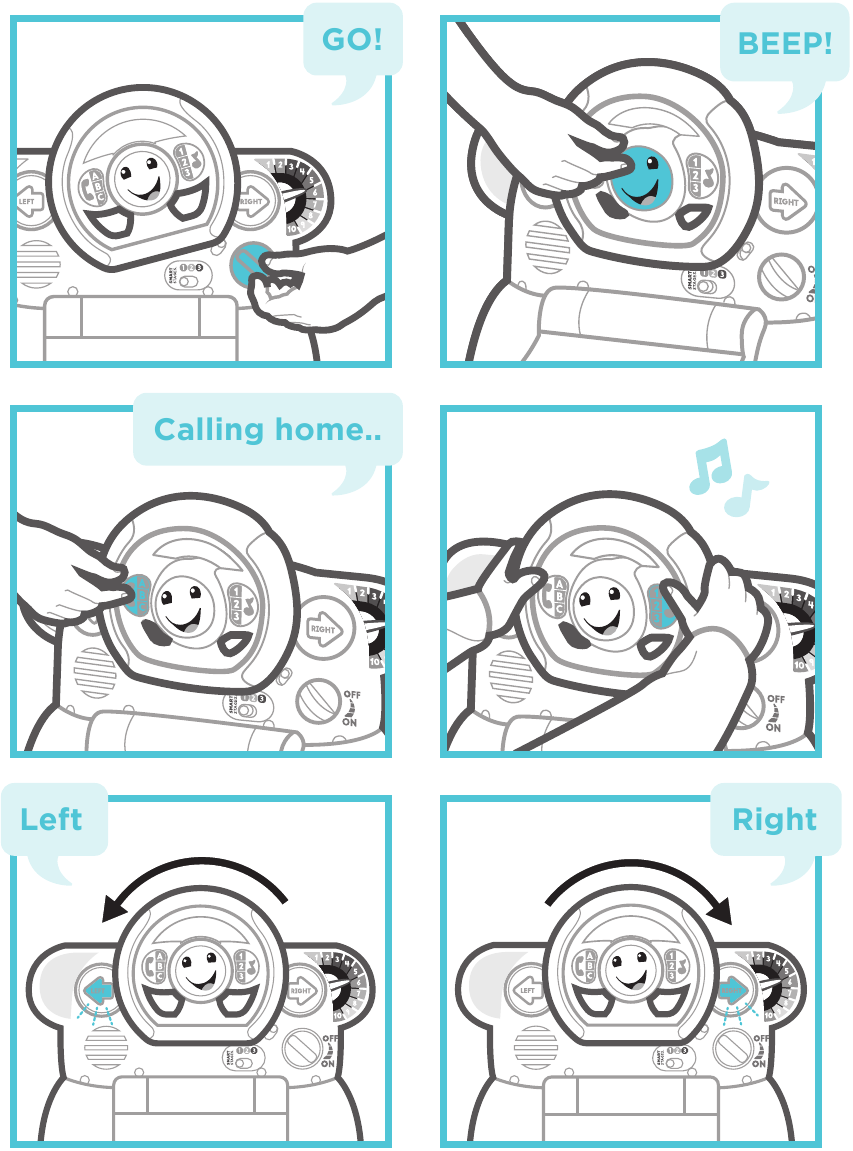 - Eksploro – Dëgjoni tinguj argëtues, këngë, fjalët e para dhe frazat që prezantojnë numërimin, ngjyrat dhe alfabetin.