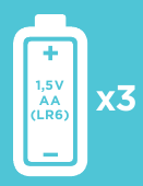 ![]() | Kërkohen tre bateri AA (përfshihen). Bateritë e përfshira janë vetëm për qëllime demonstrimi. Për jetëgjatësi më të madhe, përdorni bateri alkaline. |